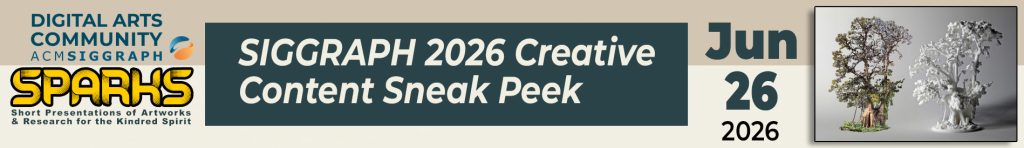 In this SPARKS session, you’ll have a sneak peek into highlights from accepted submissions and key events happening at SIGGRAPH 2026. Discover how artists are redefining the boundaries between the physical and digital worlds, and gain insight into the stories and techniques that bring their visions to life. Join us to connect with SIGGRAPH’s vibrant creative spirit and get inspired by what lies ahead!